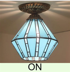 เมดิเตอร์เรเนียน8 "สไตล์ทิฟฟานี่วินเทจโคมไฟสีฟ้าอุตสาหกรรมที่ทำด้วยมือพื้นผิวติดตั้งไฟ LED ติดเพดานกระจกสีห้องนอน